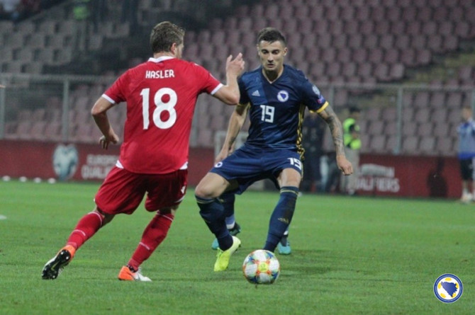 Džeko je u 65' odlično proigrao Harisa Duljevića čiji udarac iskosa sa lijeve strane brani golman Benjamin Buchel.