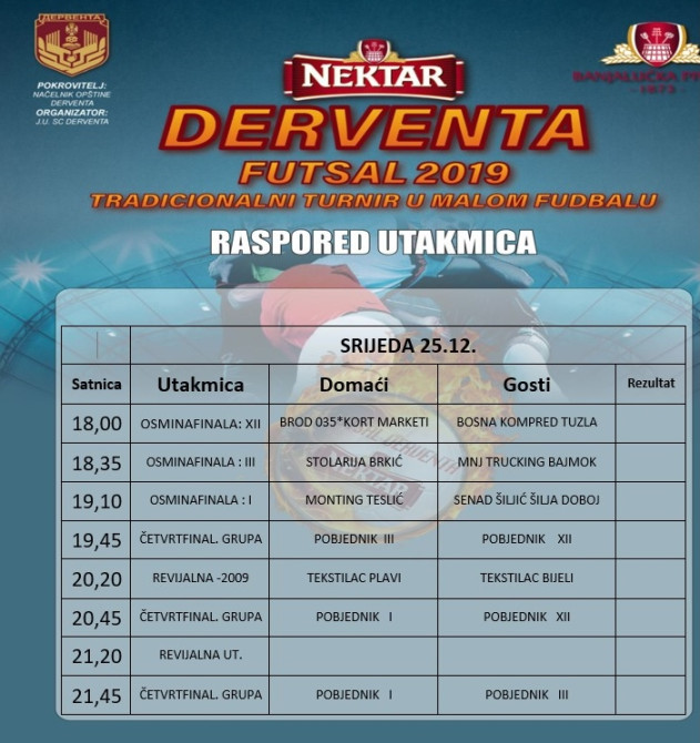 “Derventa futsal 2019” bliži se ka onom svom najboljem, eliminacijma, ali i ko će zaigrati 29. decembra na finalnoj večeri.