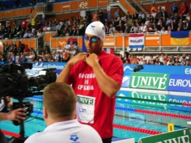 Slavna trka odigrala se 16. avgusta 2008. godine kada je po zvaničnom mjerenju vremena bio stotinku slabiji sa rezultatom 50,59. sekundi. Veliku pažnju svjetske javnosti Srbin je skrenuo na sebe tokom Evropskog prvenstva marta 2008. godine u Ajndhovenu kada je osvojio zlatnu medalju na 50m delfin pri tome oborivši dva evropska rekorda, a potom na pobjedničko postolje izašao u majici sa natpisom Kosovo je Srbija zbog čega je bio diskvalifikovan sa ostalih trka.