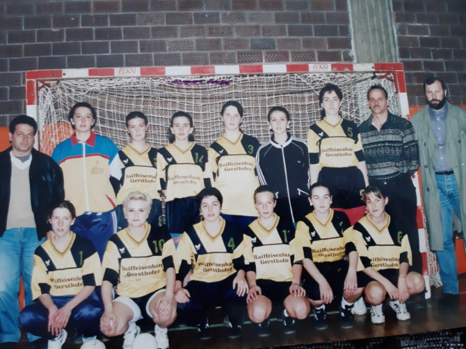 Na fotografiji su, stoje, trener Nimo Nimanović, Ramiza Čabrić, Aida Pajić, Lejla Slato, Lejla Hadžajlija, Rašela Faladžić, Samira Hadžihusejnović, trener Enver Nimanović, predsjednik kluba rahmetli Mujo Mustafić, čuče, Lamija Ljeljak, Sanela Pajić, Azemina Bajramović, Mirela Macić, Mirnesa Macić, Lana Krčenda .