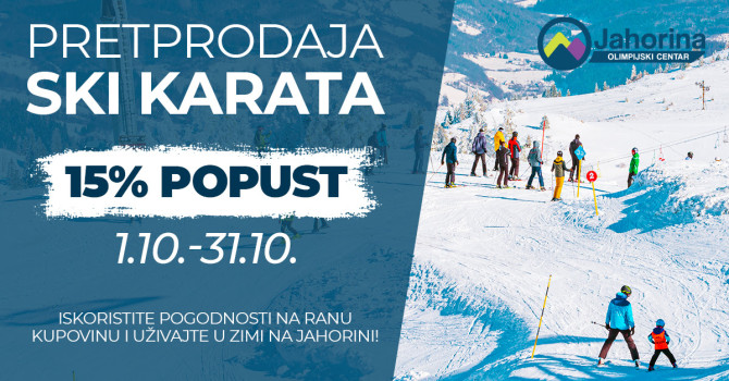 Za nadolazeću zimsku sezonu Olimpijski centar Jahorina je pripremio mnogobrojne novitete, najznačajniji su svakako radovi na ski stazama koje će ove sezone skijaše dočekati, idealno pripremljene i u svom do sada najboljem izdanju. U ovom centru je trenutno u toku akcijska pretprodaja ski karata sa popustom od 15%. Kupovina karata po akcijskoj cijeni je moguća na prodajnim mjestima na Jahorini ali i putem webshopa Olimpijskog centra Jahorina. Popust važi na kategoriju pojedinačnih ski karata od minimalno šestodnevne ski karte. Iako je mnogo uloženo u pripremu staza i nove ski sezne na Jahorini cjenovnik ski karata je ostao na istom nivou kao i prethodne godine i moguće ga je vidjeli OVDJE