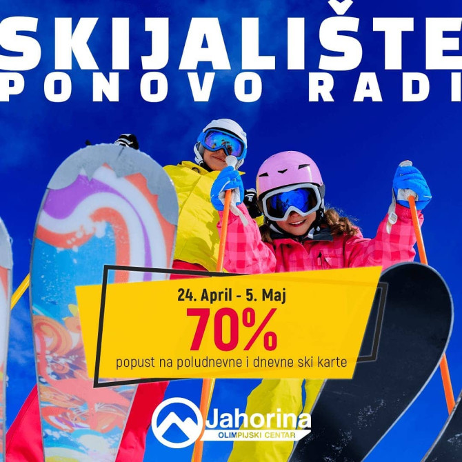 U navedenom terminu će važiti popust od 70% na poludnevne i dnevne ski karte. Planirano je da u pogonu budu šestosjed Poljice kao i lift sidro Poljice u terminu od 9:00 do 16:00 časova.
