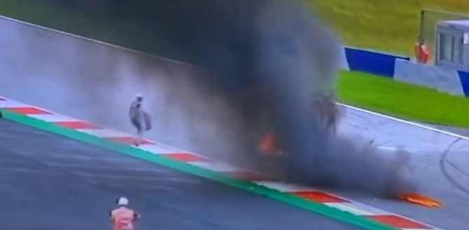 Motocikli su se nedugo zatim i zapalili, te su istaknute crvene zastave. Pedrosa je na nogama napustio stazu, dok je Salvadori iznesen na nosilima.