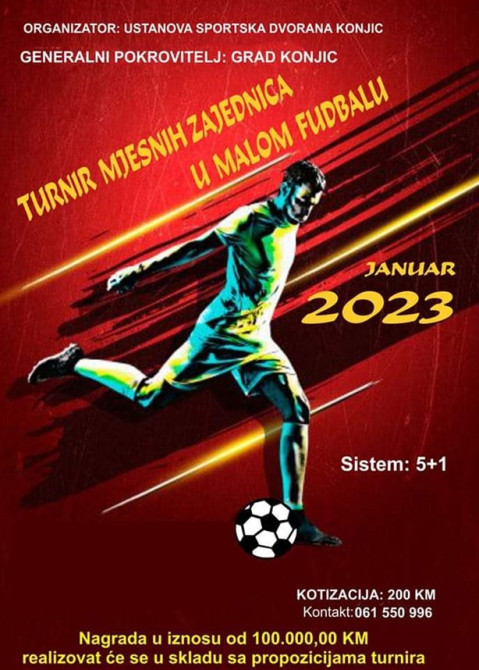 U Sportskoj dvorani u Konjicu, pod pokroviteljstvom Grada Konjica, u organizaciji Ustanove Sportska dvorana Konjic počeo je turnir Mjesnih zajednica Grada Konjica, prijavilo se deset ekipa koje su podijeljene u dvije grupe, a nagradni fond je 100 000 KM.