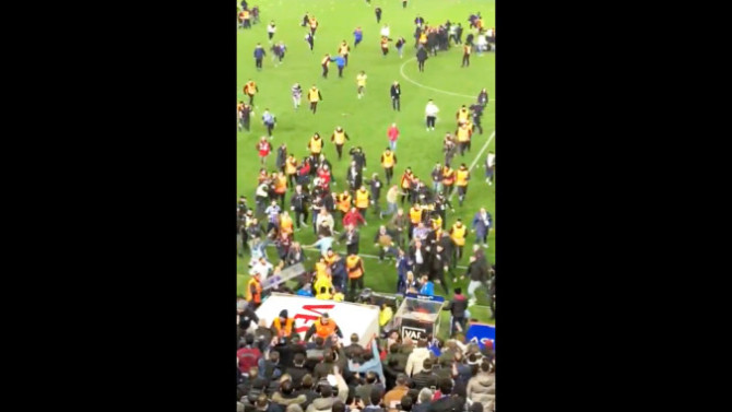 Prvo je jedan navijač utrčao u teren i krenuo ka igračima Fenerbahčea, koji su odmah krenuli ka njemu u pokušaju da se odbrane i da ga napadnu. Odmah su utrčali redari u pokušaju da spreče tuču.