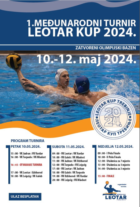 Vaterpolo klub Leotar organizovaće od 10. do 12. maja prvi " Leotar kup ", koji će okupiti timove iz šest država i to iz – Bosne I Hercegovine, Srbije, Njemačke, Ukraine, Hrvatske i Makedonije.