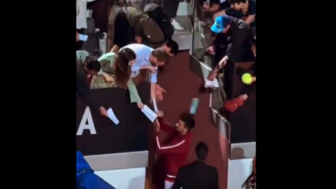 The tournament released a video showing that Novak Djokovic was hit on the head by accident.