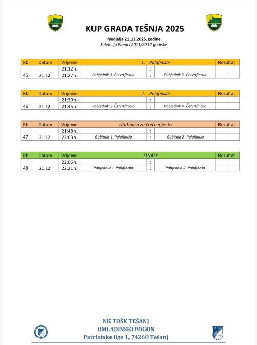 Takmičenje će se igrati u JU Sportsko-rekreativni centar Tešanj, i to u dva dana. U subotu, 20. decembra, na teren izlaze predpioniri (2013/2014 godište), dok je nedjelja, 21. decembar, rezervisana za pionire (2011/2012 godište). Očekuje se prava sportska fešta, uz veliki broj utakmica, kvalitetne ekipe i izuzetnu atmosferu.