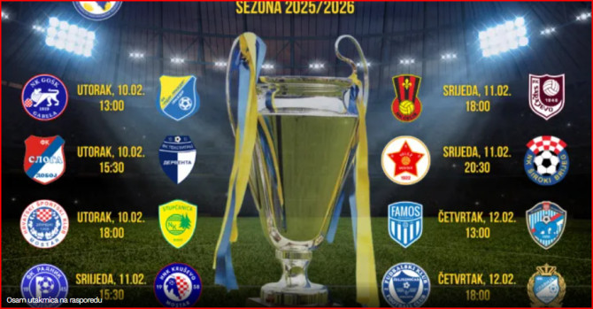 Pred nama je osmina finala Kupa Bosne i Hercegovine, koja će biti odigrana u tri dana – od utorka do četvrtka.