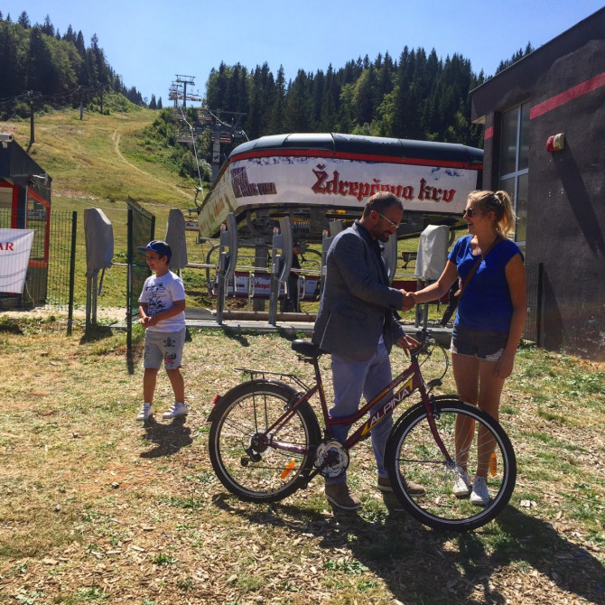 V.D. direktor Olimpijskog centra Jahorina, Dejan Ljevnaić je uručio nagradno biciklo a srećna dobitnica je Eva Lipinska iz Varšave, Poljska. Ovo je još jedan pokazatelj da Jahorinu pored gostiju iz regiona posjećuje i puno stranih turista. Eva nam je rekla da je prvi put u Bosni i Hercegovini, posebno ju je oduševila Jahorina, vožnja šestosjednom i pogled sa vrha planine i da svakako planira ponoviti posjetu.