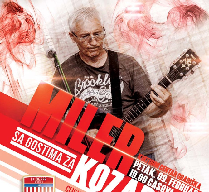 Pod nazivom “Miler sa gostima za Kozaru” u petak, 9. februara u Kulturnom centru Gradiška sa početkom u 19 časova biće održan rok koncert čiji će sav prihod biti doniran Fudbalskom klubu Kozara u svrhu njegovog razvoja.