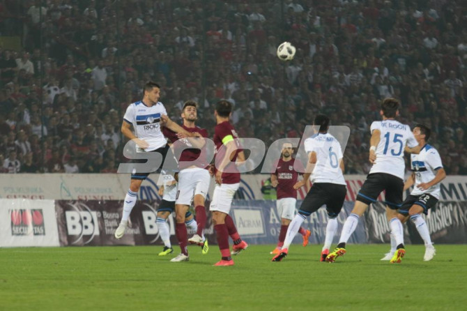 I pored sjajnog ambijenta na stadionu Koševo pred više od 20 hiljada gledalaca koji su došli da podrže FK Sarajevo, Atalanta je pokazala koji je zapravo nivo fudbala kakav se igra u ligama petice i koliko bh klubovi kvalitetom zaostaju za najboljim što Evropa može ponuditi. Nije se u prvih nekoliko minuta večerašnje utakmice dalo naslutiti da će Sarajevo doživjeti istinsku katastrofu, a Bordo tim je imao dva opasna napada po bokovima preko Halilovića sa lijeve i Hebibovića sa desne strane, no nije nijednom uspio uputiti udarac ka golu gostiju.