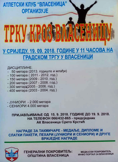 „Nekoliko godina unazad, mi organizujemo trku vlaseničkim ulicama, na kojoj učestvuju atletičari iz cijele Bosne i Hercegovine. Prošle godine ovu manifestaciju je podržala i naša najbolja atletičarka Lucia Kimani, a i danas u Vlasenici očekujemo najzvučnija imena iz ovog sporta. Takmičenje će biti u osam diciplina, a kao i uvijek, uz pomoć sponzora, obezbijeđene su vrijedne nagrade, diplome, medalje i pehari“, kazao je Krstić.