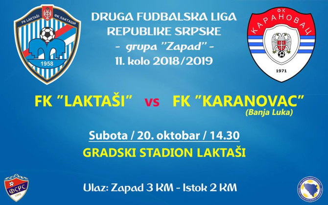 Laktaši će u 11. kolu biti domaćin lideru šampionata Karanovcu. Utakmica se igra u subotu 20. oktobra, od 14.30 časova, na Gradskom stadionu u Laktašima.
